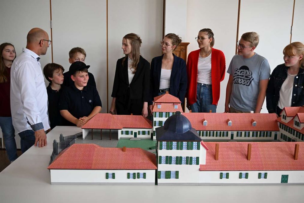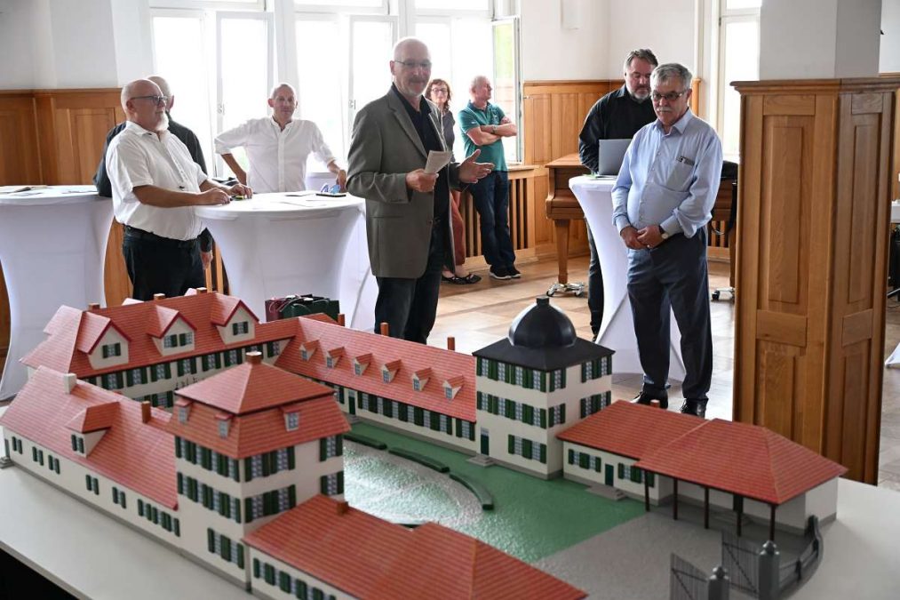 Das fertige Modell des Schlosses wurde Ende August in einem Festakt in Haubinda übergeben, begleitet von geladenen Gästen aus der Lokalpolitik und Kirche sowie interessierten Schülerinnen und Schülern aus Grundschule, Regelschule und Oberstufe des Lietz Internatsdorfs Haubinda. Schul- und Internatsleiter Burkhard Werner, sichtlich stolz auf das Ergebnis, erinnerte in seiner Ansprache an die Geschichte und das Gemeinschaftsgefühl, das durch solche Projekte entsteht. Die Schülerinnen und Schüler konnten sich durch das Gespräch mit den Vereinsmitgliedern mit der lokalen Vergangenheit beschäftigen und vielleicht den Grundstein einer zukünftigen Projektarbeit legen.