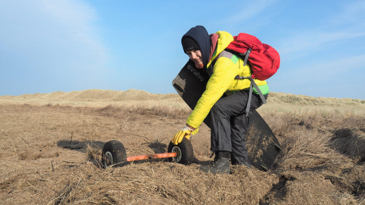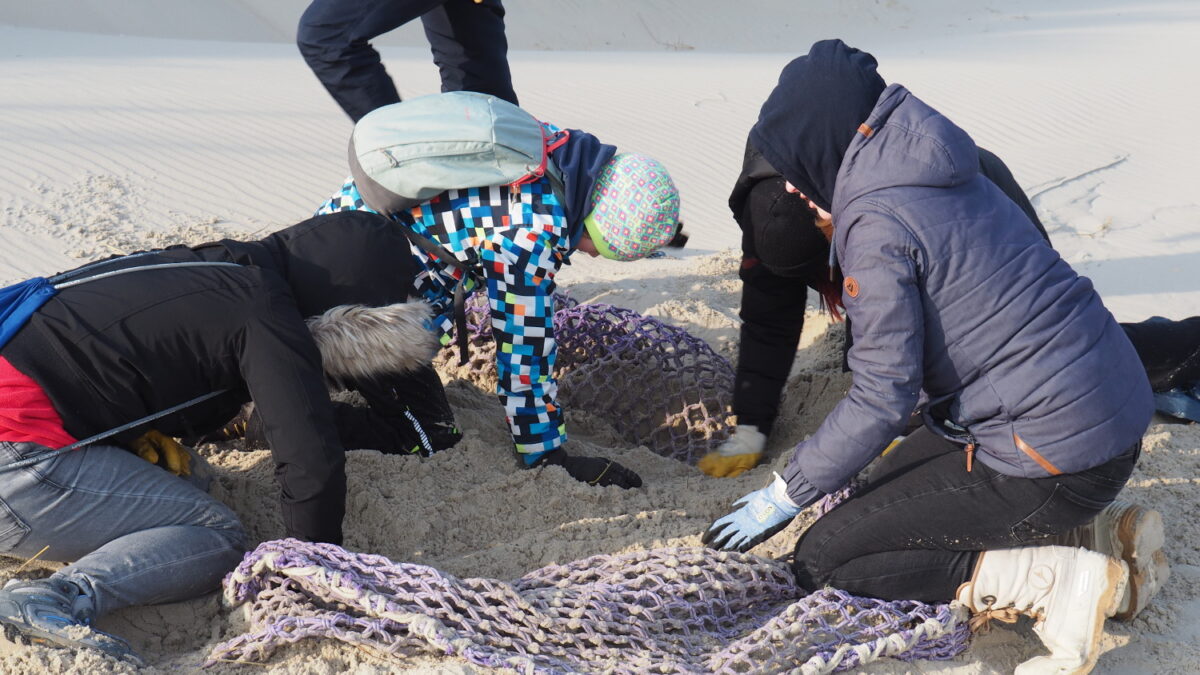Riesige Netze, schwere Festmacherleinen, Plastikfolien in allen Größen und Farben – einen beträchtlichen Teil des Meeresmülls, den sie vor allem unmittelbar am Fuß der Dünen entdeckten, mussten die Lietzer*innen mit viel Geduld erst einmal aus dem Sand graben. In vielen Gesichtern waren Staunen und auch oft Unglauben zu erkennen, dass der weiße Nordseestrand eine Sammelstelle für so große Mengen Mülls ist, der mit Strömung und Flut auf die Insel gespült wird. Zu den kuriosesten Funden an diesem Tag gehörten sicherlich eine Flaschenpost aus Lettland, ein elektrisch betriebenes Auto für Kinder und ein Kiteboard. Dessen Besitzer hatte seine Kontaktdaten auf dem Board hinterlassen. So konnte ihn die Finderin später per Telefon mit einer guten Nachricht überraschen.