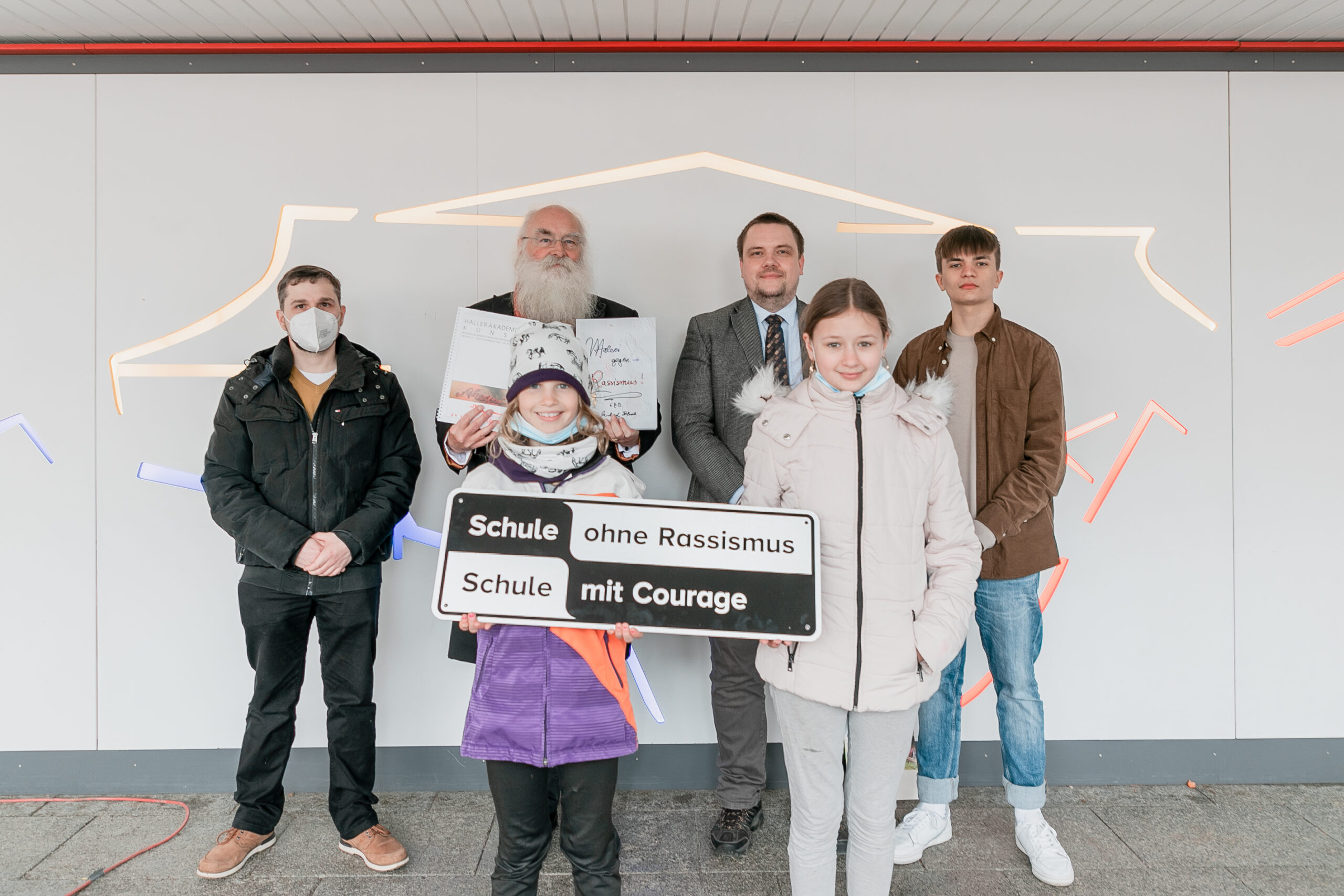 Im April konnte die feierliche Übergabe des Siegels „Schule ohne Rassismus, Schule mit Courage“ nun endlich in feierlichem Rahmen auf dem Schulhof erfolgen, welche seit 2020 aufgrund der Corona-Pandemie verschoben werden musste.